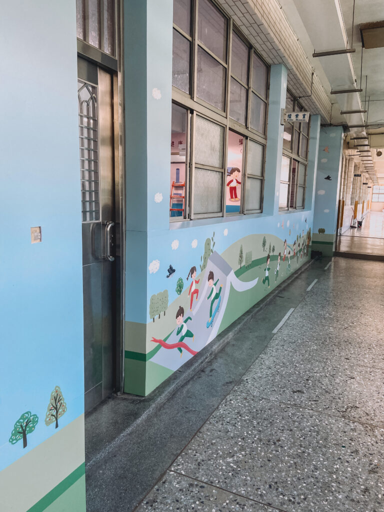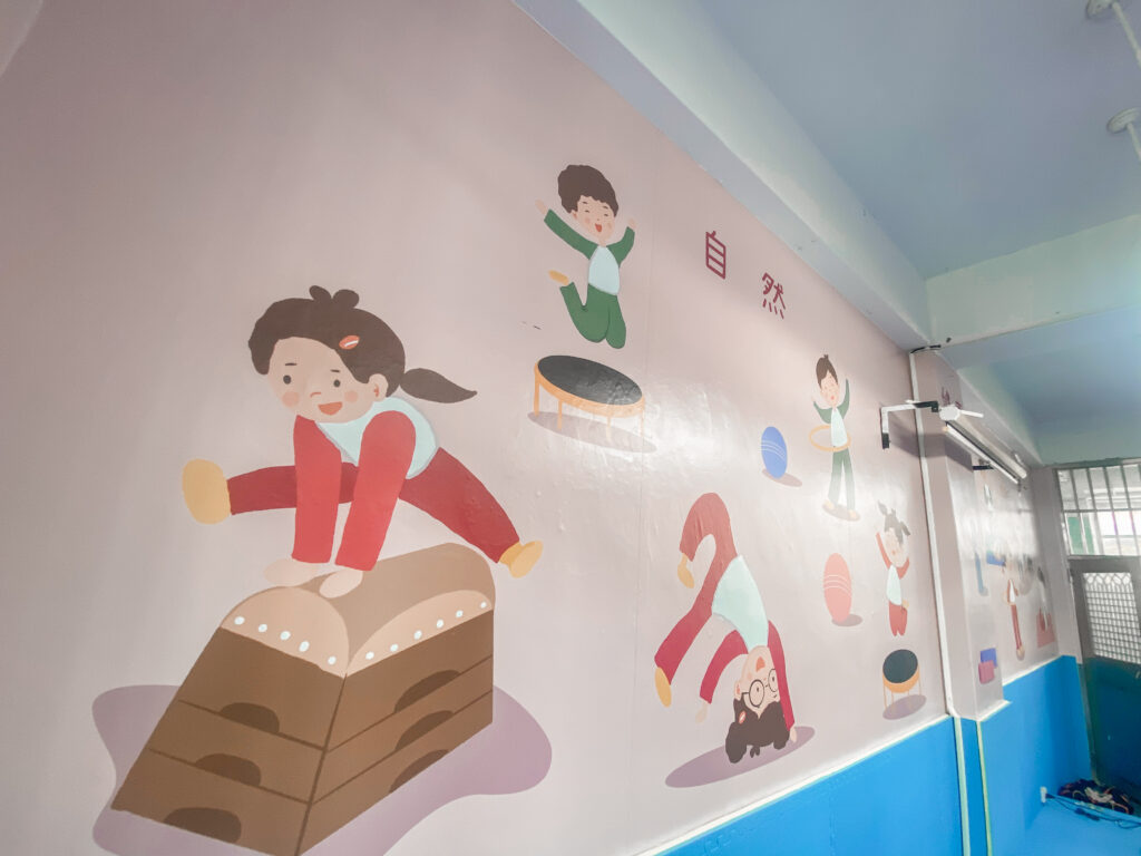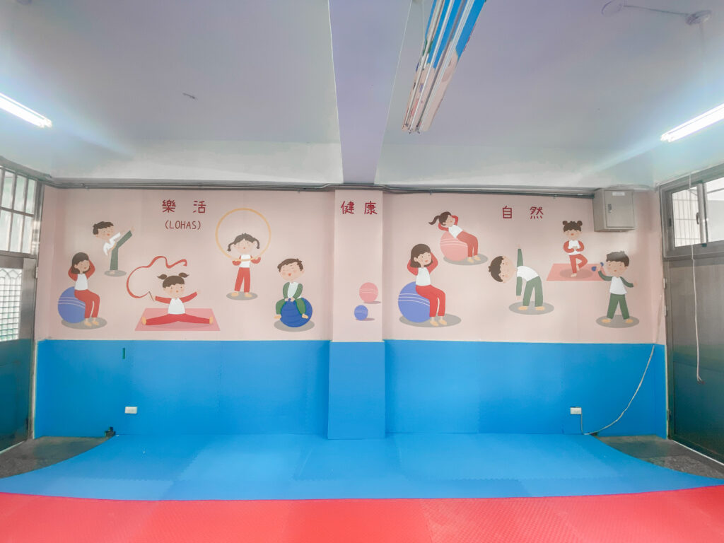 此次幫助雙城國小製作教室外牆美化以及室內牆面美化,另因學校希望將此教室打造成小朋友運動樂活站,因此在地板上鋪設巧拼