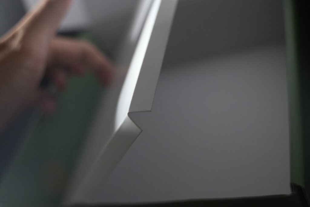 此案選用pizza盒型,表面利用上霧+壓花增加觸感,內襯下層多做一個墊高襯可以放盤子及叉子,中間多做孔洞方便拿取。